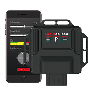 The PedalBox is the original throttle response controller from DTE Systems. The throttle tuning optimises the accelerator pedal characteristic curve and thus improves acceleration by up to +10% for all vehicles with electronic accelerator pedals - regardless of whether petrol, diesel, hybrids or electric cars. With the PedalBox Pro Remote, the PedalBox can be operated wirelessly and easily stored on the keychain. At the same time, it can also be operated at any time with your own smartphone. Thanks to the simple installation, the PedalBox is installed on the throttle in no time at all and is immediately ready for use.
