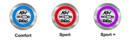 The included KW DDC button allows to switch between the three damper sets "Comfort", "Sport" and "Sport +". Here, the KW DDC button changes the color.