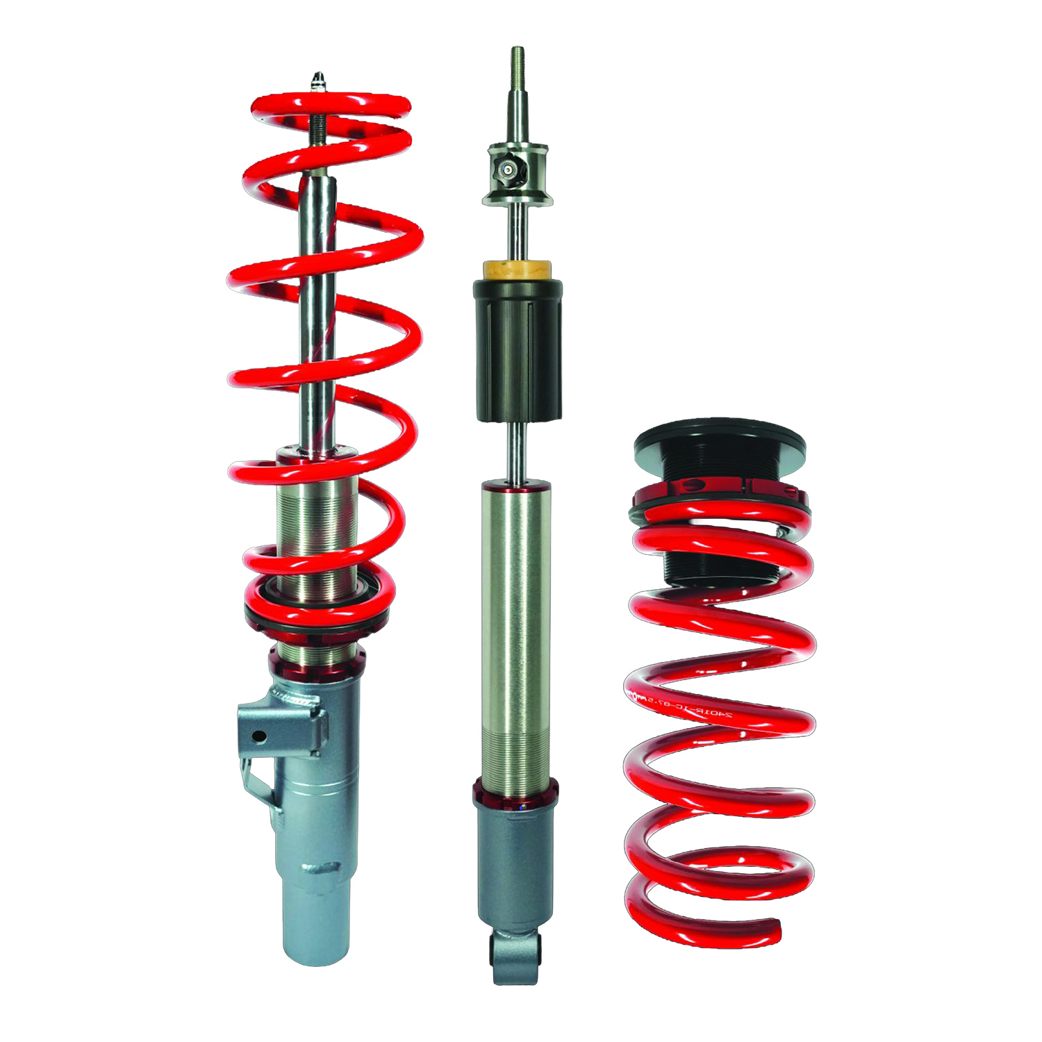 Profender FITZ coilovers feature monotube dampers with progressive springs, tuned through dyno and real-world testing for optimal handling. Rear dampers use an inverted design when needed to improve response and rigidity.