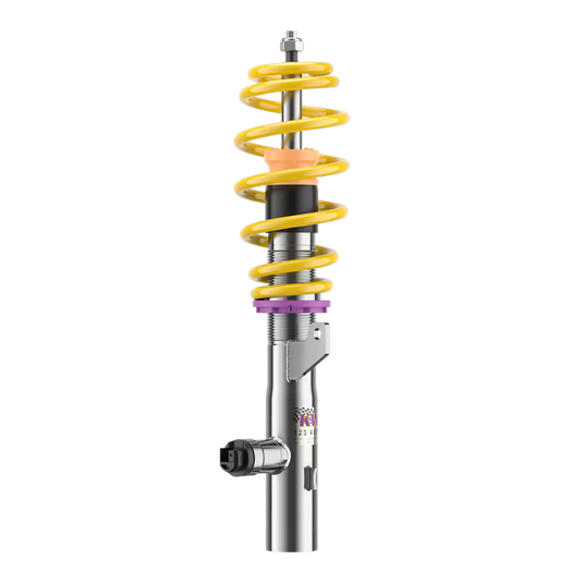 This adaptive coilover suspension is suitable for vehicle models with electronically controlled standard suspension. During installation, the standard suspension struts are replaced by the KW suspension. Our adaptive dampers are connected to the standard on-board electronics. The standard damper control and the standard driving dynamics switch are retained and now control the DDC Plug & Play.